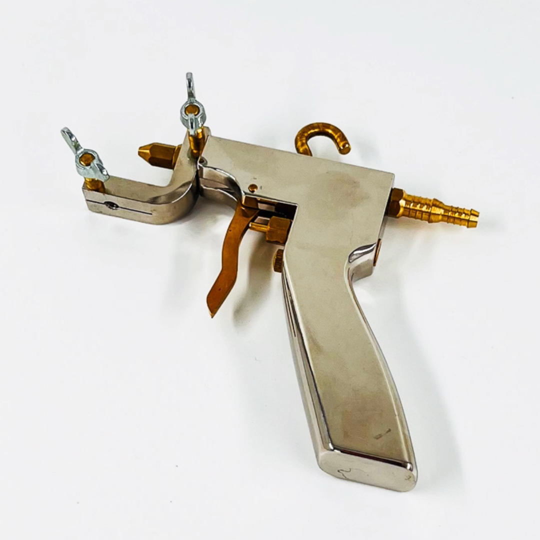 Sprutpistol för läderfärg som lämpar sig väl för lite större arbeten, till exempel infärgning av fåtölj, hel soffa eller bilinredning. Med färgsprutan är det möjligt att lägga jämna, tunna och fina lager av både färg och finish.