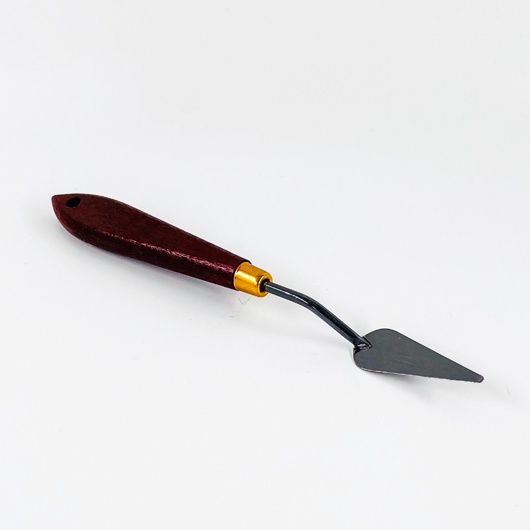 Spatel, ett mångsidigt verktyg som främst används för att applicera läderfiller och läderlim. Spetsen är tillverkad av tunt och flexibelt rostfritt stål, vilket gör den enkel att använda och rengöra. Spatelns form gör det lätt att applicera små mängder av produkt i små områden där det behövs.